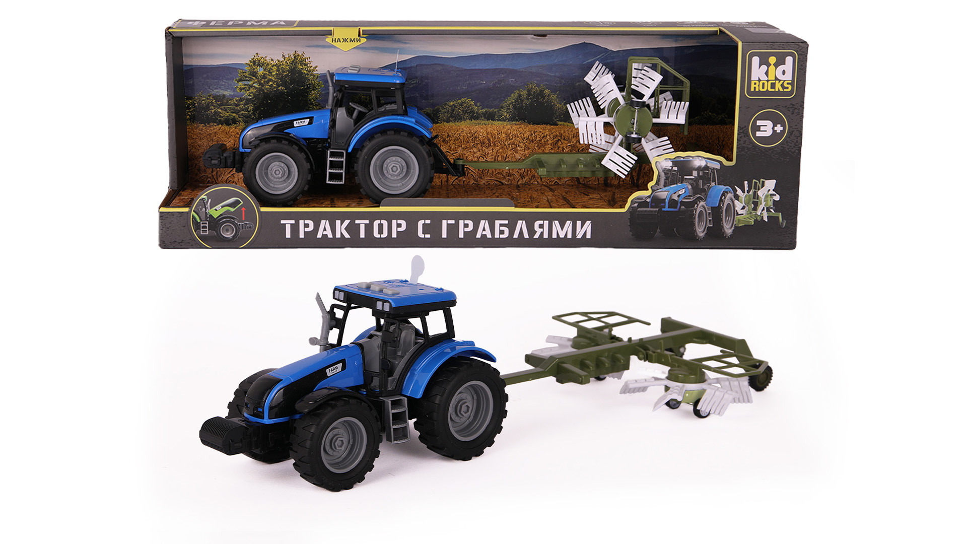 Трактор ТМ KID ROCKS с подвижными деталями, звуковыми и световыми эффектами - лучший подарок для юного любителя спецтехники. Отличная детализация, реалистичный дизайн и большое количество подвижных элементов - обеспечат максимальное погружение в игру и помогут познакомить ребенка с видами спецтехники.